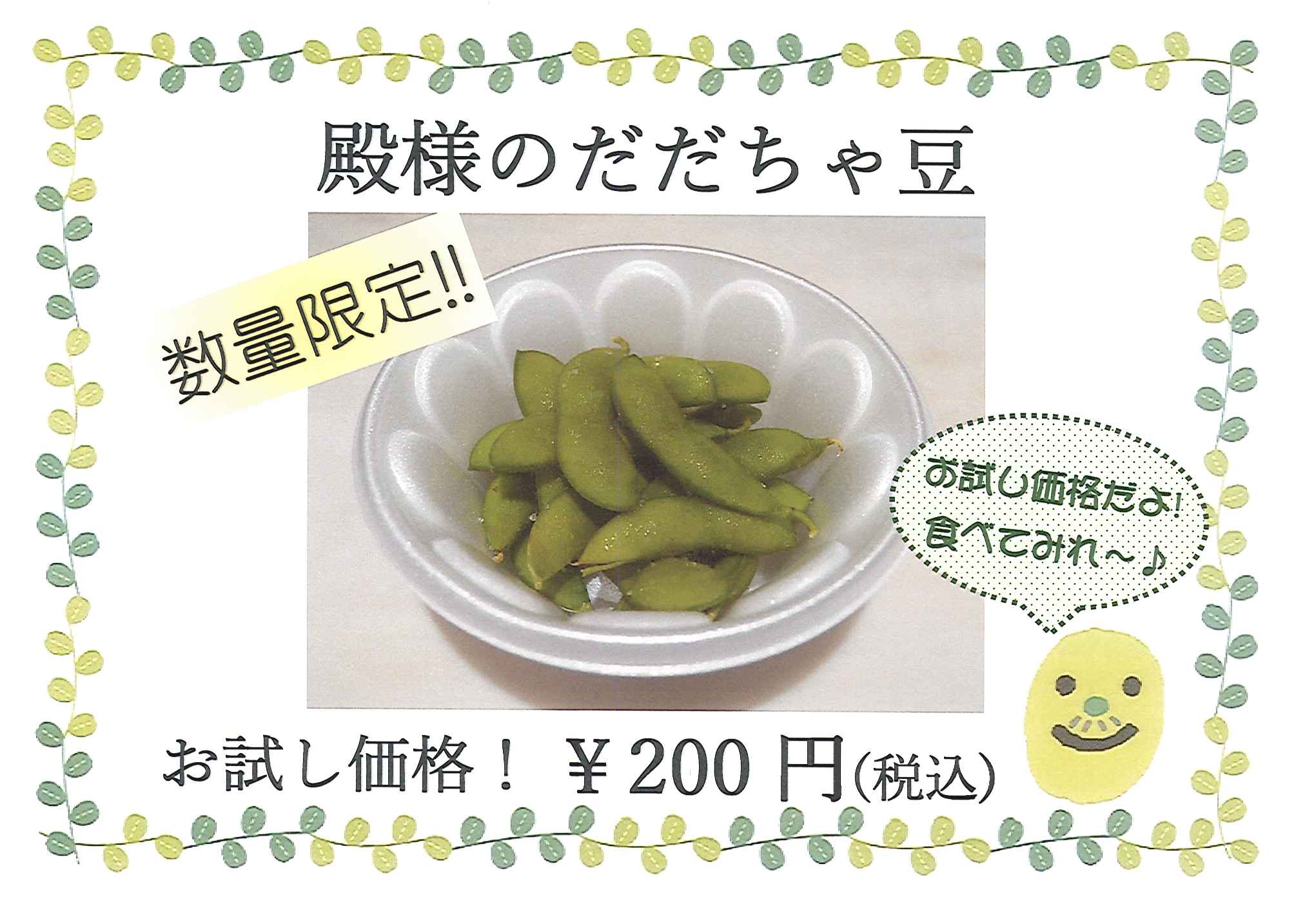 【2階有料待合室】季節限定酒飲み比べ&だだちゃ豆の販売をしております